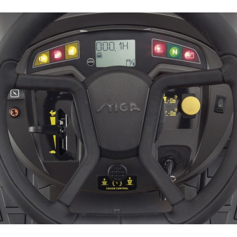 Profitez d'une conduite agréable avec un siège confort rembourré et réglable, ainsi qu'un tableau de bord intuitif qui regroupe toutes les informations essentielles. L'avancement hydrostatique permet une maîtrise précise de la vitesse, rendant les manœuvres plus simples.