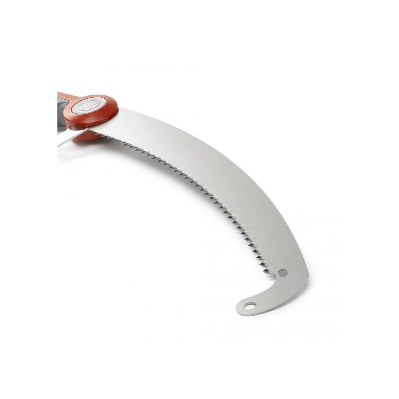 Découvrez la scie de 37 cm en acier incurvée, idéale pour l'élagage professionnel. Son outil interchangeable Multi-Star et sa lame en acier de forte dureté garantissent une durabilité et une efficacité optimales. Ce modèle est équipé d'un couteau coupe-écorce qui préserve l'intégrité de l'écorce lors de la coupe. Pour un confort d'utilisation maximal, il est conseillé d'utiliser les manches ZMT1 ou ZMT2.